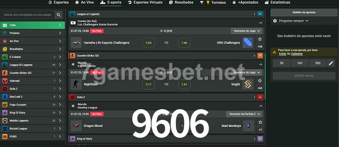 O 9606 oferece uma grande seleção de opções de apostas em e-sports com probabilidades competitivas